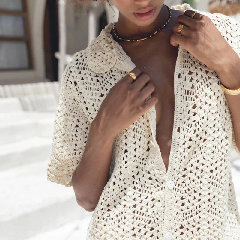 Women's Blouses & Shirts Custom Comfortable Button Down Cream Crochet Shirt